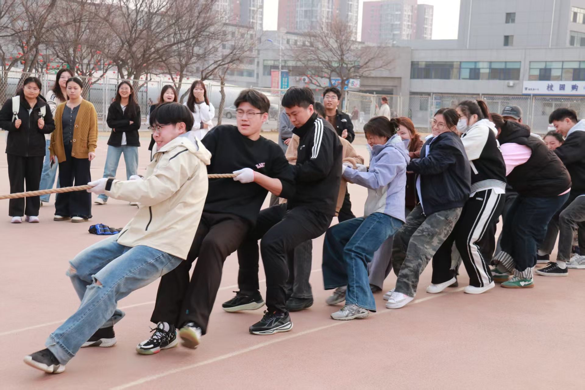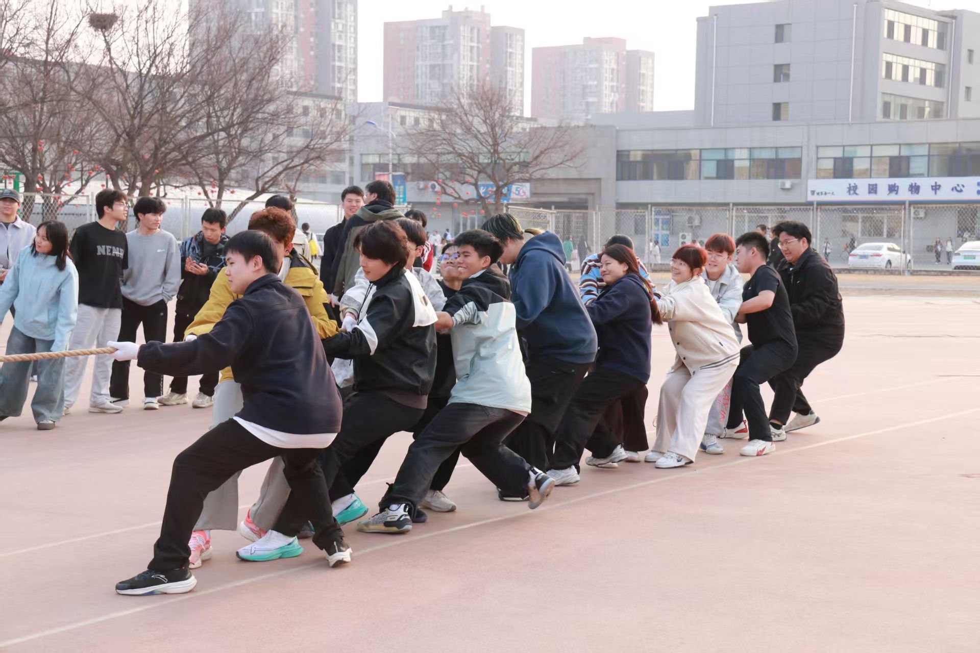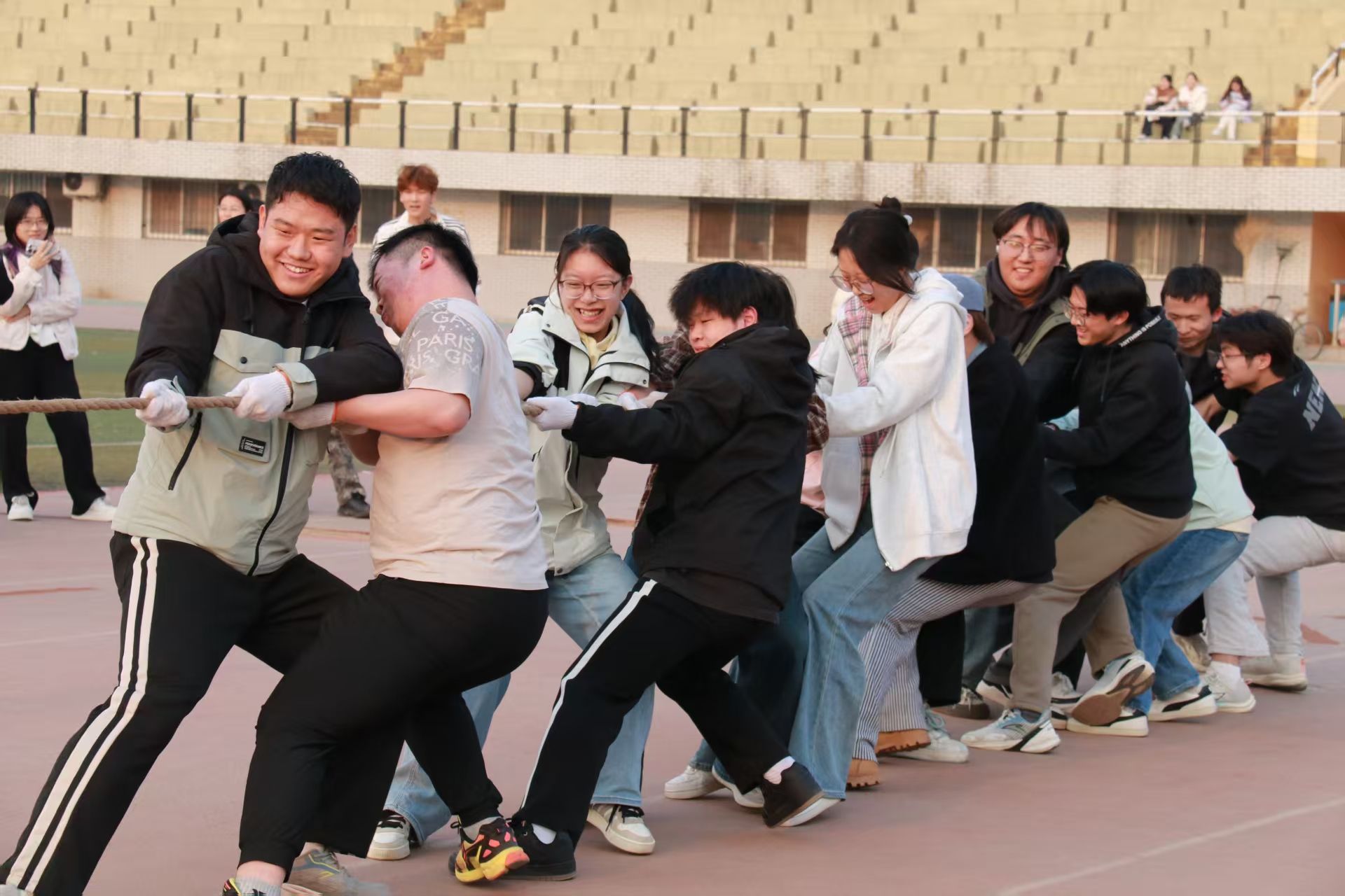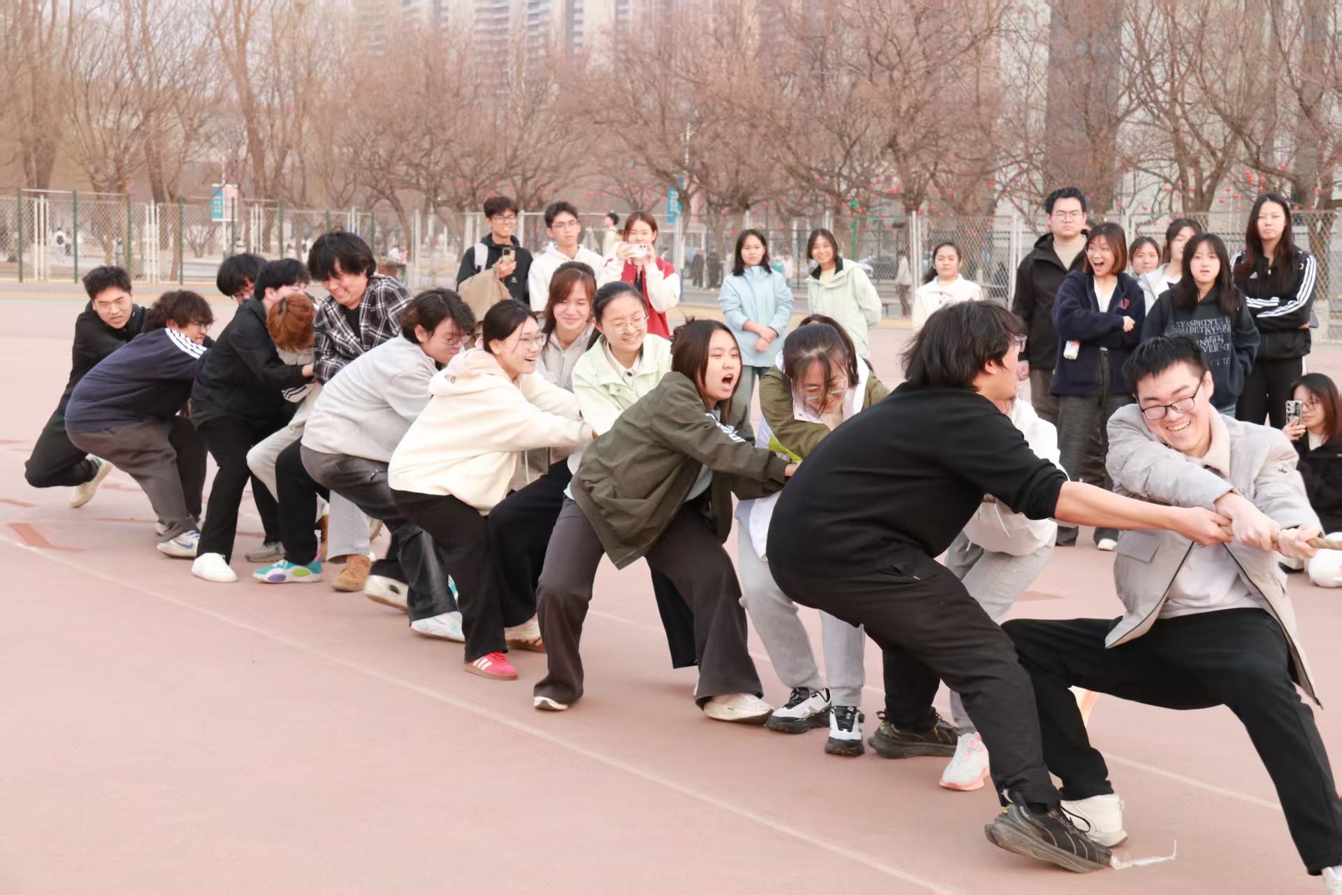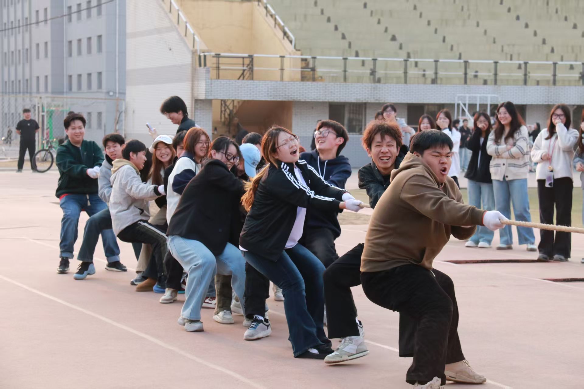 3月26日,医学信息工程学院英雄争“拔”赛在操场隆重举行,来自2023级、2024级、2025级的5支代表队齐聚赛场,以团结奋斗之姿展现医信学子昂扬风貌。比赛现场,各队伍紧握长绳、齐心协力,在整齐的号子声中奋力拼搏,围观同学的呐喊助威声此起彼伏,充分彰显了“心往一处想、劲往一处使”的团结精神。