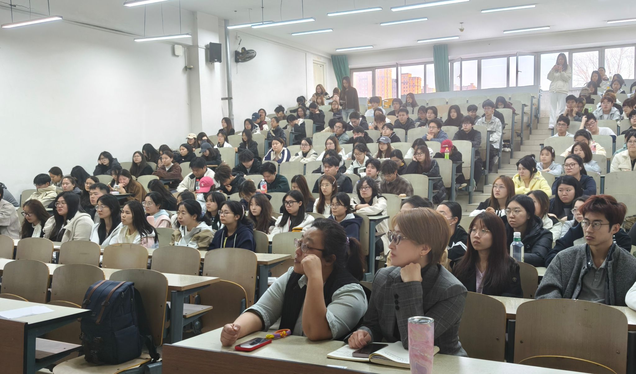 讲座中,郑天佑讲师以AI技术演进为脉络,深度剖析大模型与Agent的核心价值,拆解AI驱动生产力革新的关键路径,并结合医学信息专业特色,讲解AI在医药研发、医疗数据治理等领域的落地应用。互动环节,师生踊跃提问,郑天佑讲师细致解答,重点强调使用AI工具需强化辨别能力、提升自主创造力,避免过度依赖,现场氛围热烈。
