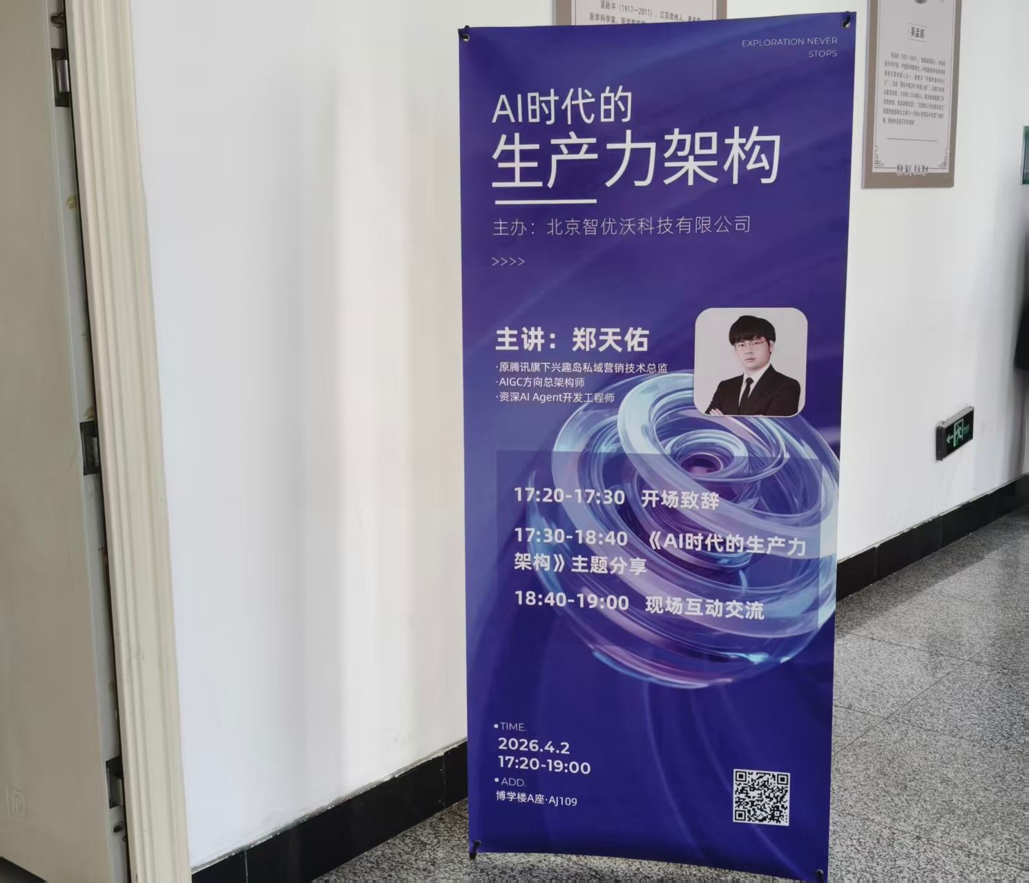 4月2日,医学信息工程学院于博学楼AJ109教室成功举办“AI时代的生产力架构”专题讲座。本次讲座特邀原腾讯旗下兴趣岛(千聊)私域营销技术总监、AIGC方向总架构师,GitHub全球开源社群优质开源项目贡献者、AI Agent开发工程师郑天佑主讲,学院师生积极参与。